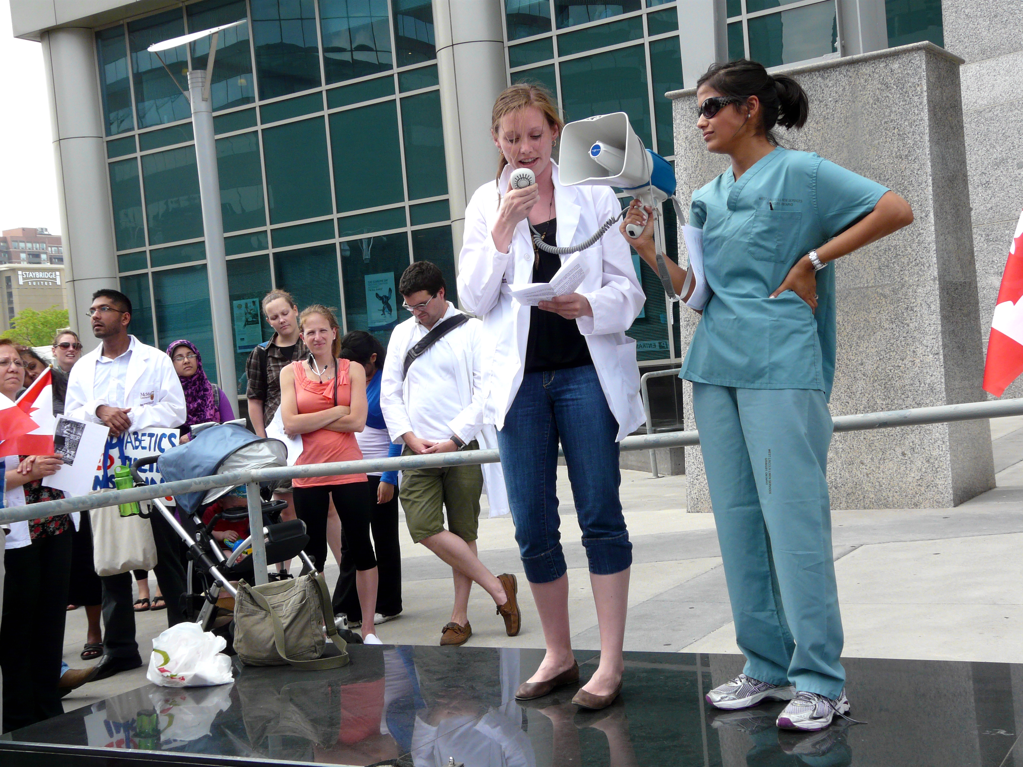 Health care providers and allies attended rallies in over a dozen cities across Canada today to demand that the Federal government reverse cuts to the Interim Federal Health Program. HPAP members attended the rallies in Toronto and Hamilton.